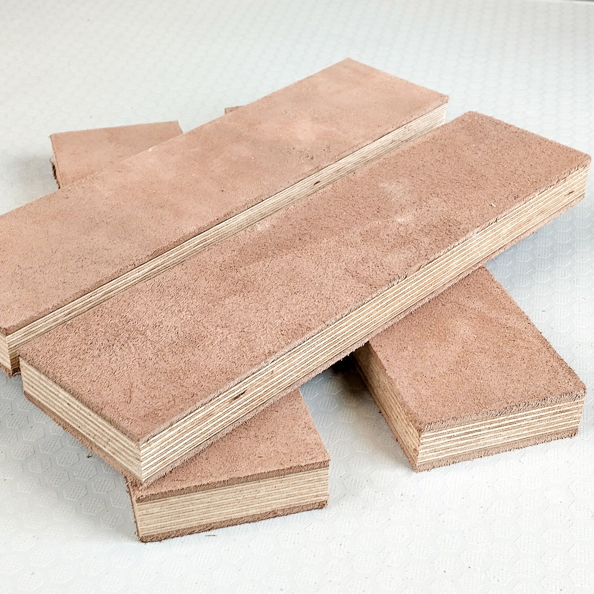 Die endgültige Lösung wurde durch Versuch und Irrtum gefunden. Wir haben uns für Leder der Klasse 1 mit einer Dicke von etwa 4 mm entschieden. Die glänzende und harte Oberflächenschicht wurde abgeschliffen, wodurch eine hervorragende Grundlage für Diamant-Emulsionen und Pasten freigelegt wurde.