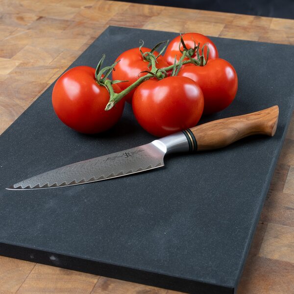 Die Materialkombination sorgt für ein Schneidgefühl, das näher an Holz als an Kunststoff liegt. Das Messer prallt nicht von der Oberfläche ab, wodurch das Schneiden kontrollierter und angenehmer wird.