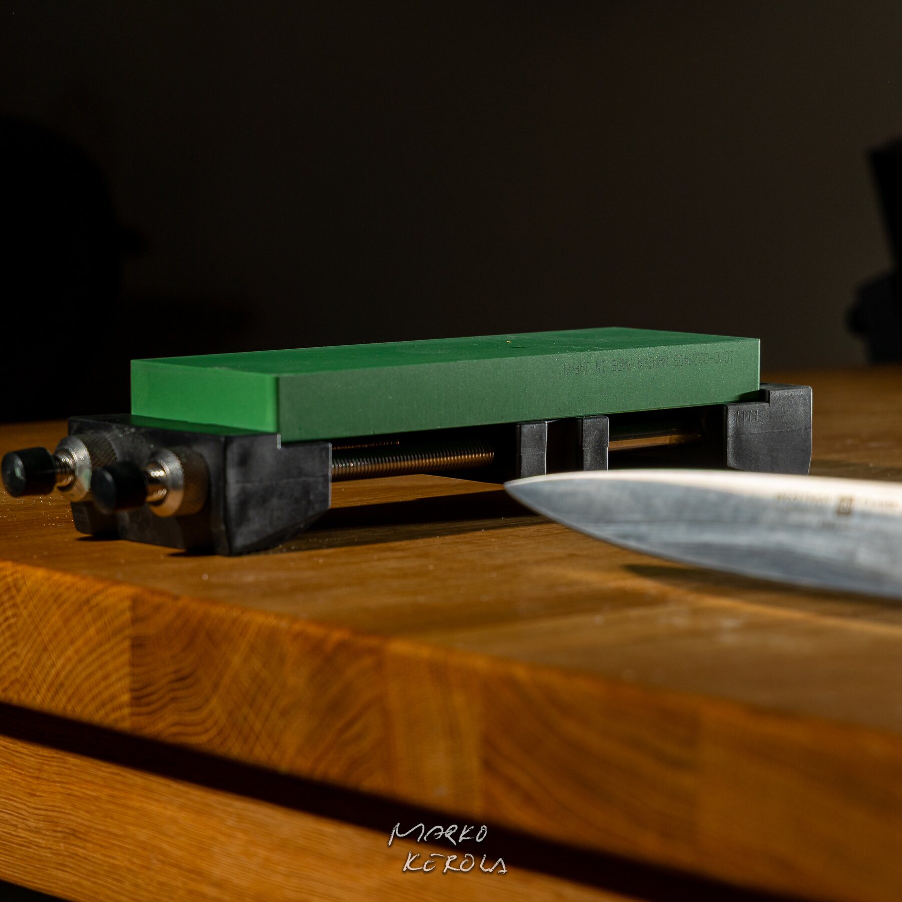 Tämä laite on aivan ehdoton teroitussessiossa: kiven tukeminen esim. pöydälle suoraan tms. on huuhaata. Todella tärkeä laite noille arvokkaille kiville ja onnistuneelle teroitukselle.