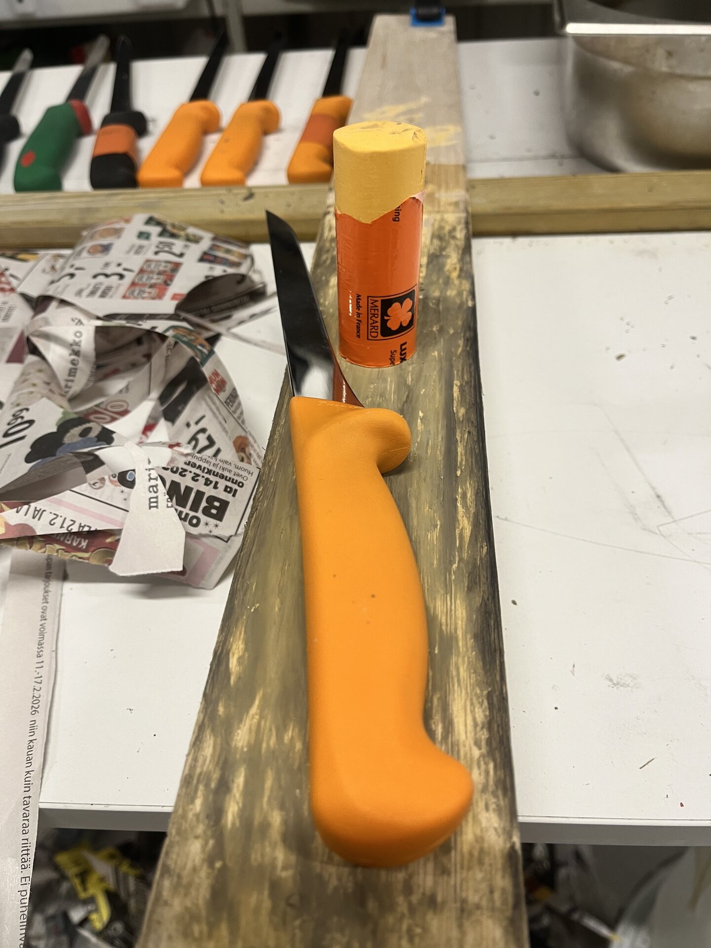 Tärkeää on huolehtia työvälineiden puhtaudesta: älä käytä samaa stroppia valkoisen ja oranssin pastan kanssa. Käytä puhdasta pintaa ja levitä siihen oranssi pasta.