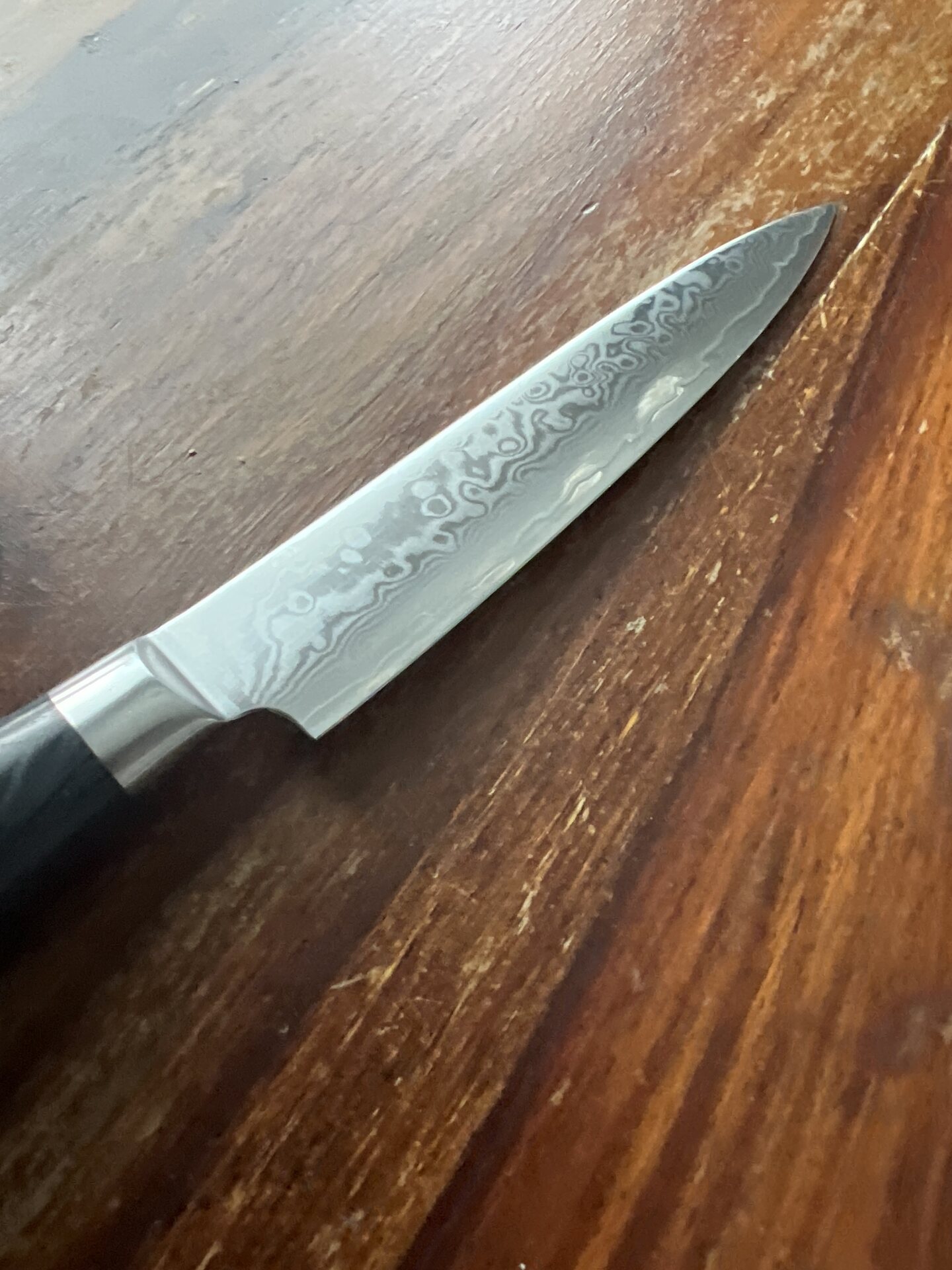 Erityistä tässä veitsessä on myös Pakkawood-kahva – luonnonpuusta valmistettu, hartsilla kyllästetty ja laminoitu materiaali. Se yhdistää aidon puun kauneuden ja tuntuman kestävyyteen, joka ylittää selvästi tavallisen puun. Kahva istuu käteen poikkeuksellisen mukavasti ja tekee tästä mallista yhden suosikeistani.